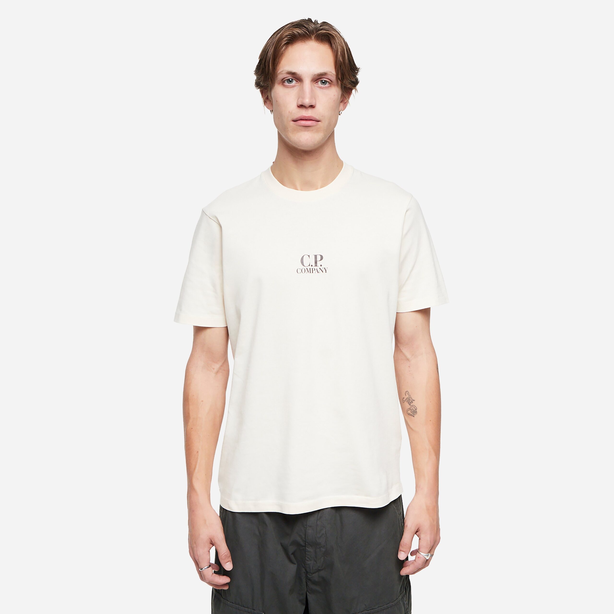 Hybridisers of archival military, work and sportswear silhouettes, Italian-born C.P. Company create non-conformist interpretations of functional menswear classics with artisanal expertise. Beige – 100% cotton – Regular fit – Ribbed crew neck – Screen print – Model is 6’2.5” and wears a size medium.