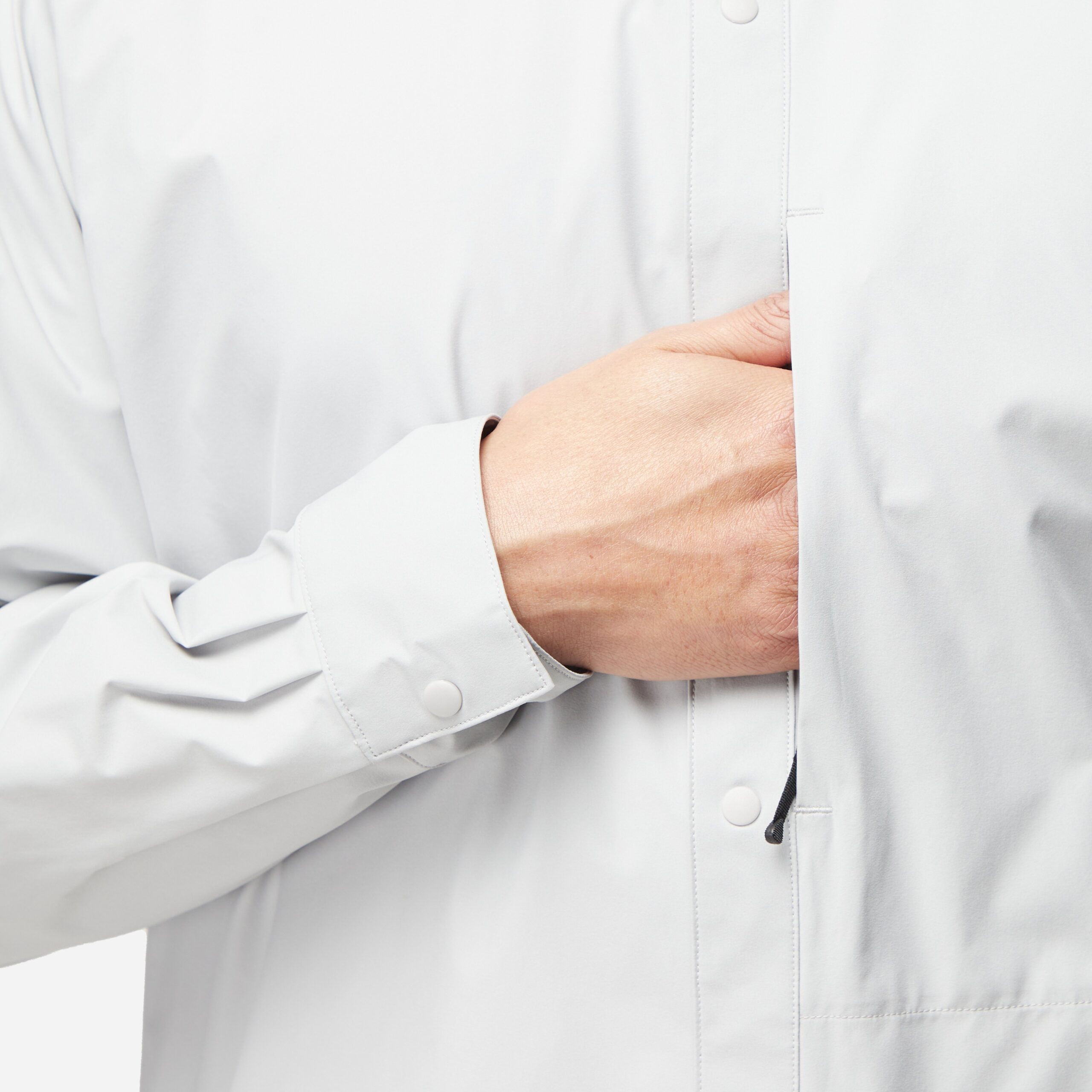 The Stretch Hike Shirt is made for dual performance as an everyday casual look in the city and useful mountain layer. The style has a water-resistant coating applied to a 4-way stretch material accented with a host of design features to aid mobility. Grey – 100% polyester (4-way stretch taffeta) – Gusseted underarms and sleeves – Zip chest pocket – Snap closure – Relaxed fit – Model is 6’0″ and wears a size medium.