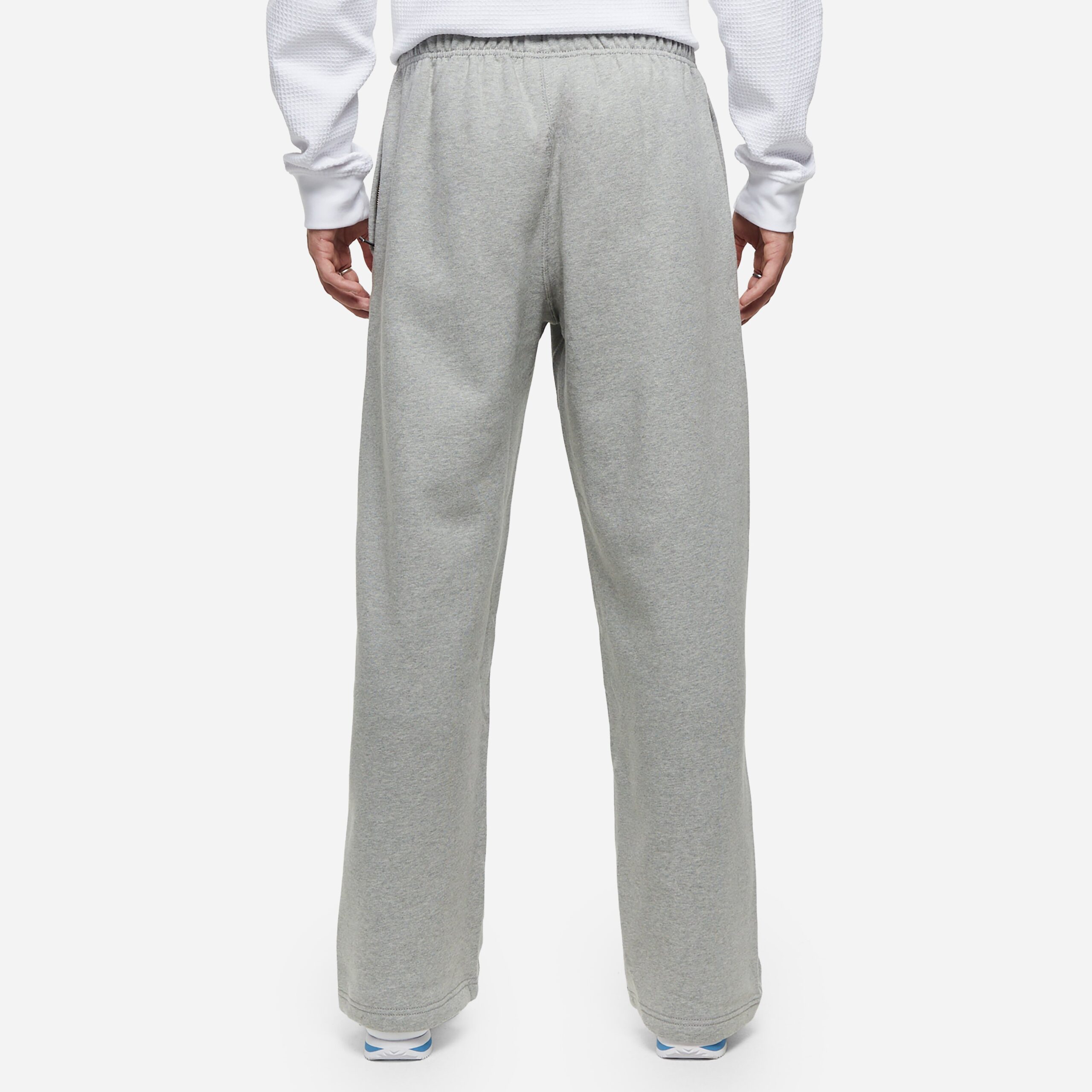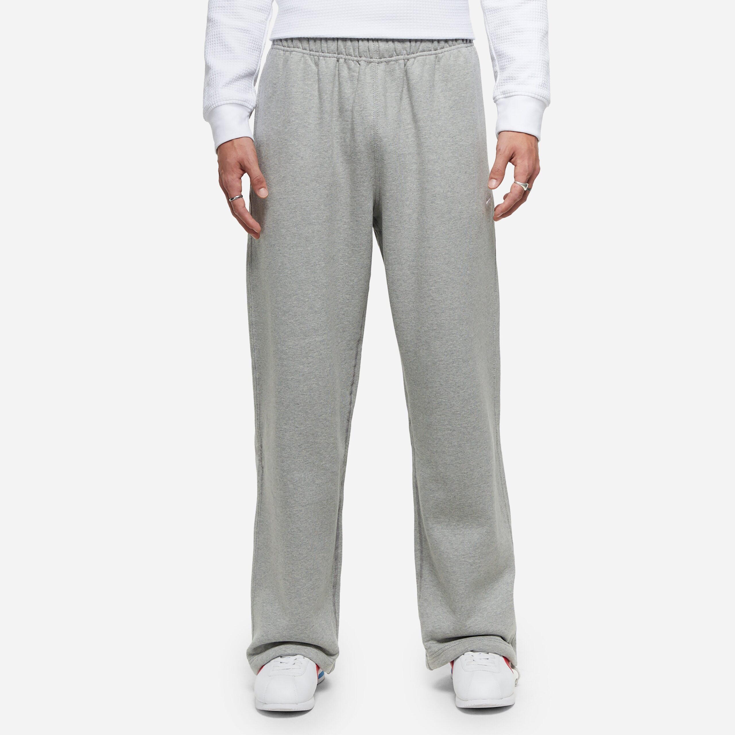 Nike’s Solo Swoosh Fleece Pants are crafted from a heavyweight brushed fleece with open hems that create a loose, structured fit. Grey – 84% cotton, 16% polyester – Elastic drawcord waist – Zip pockets – Swoosh embroidery – Model is 6’2.5″ and wears a size medium