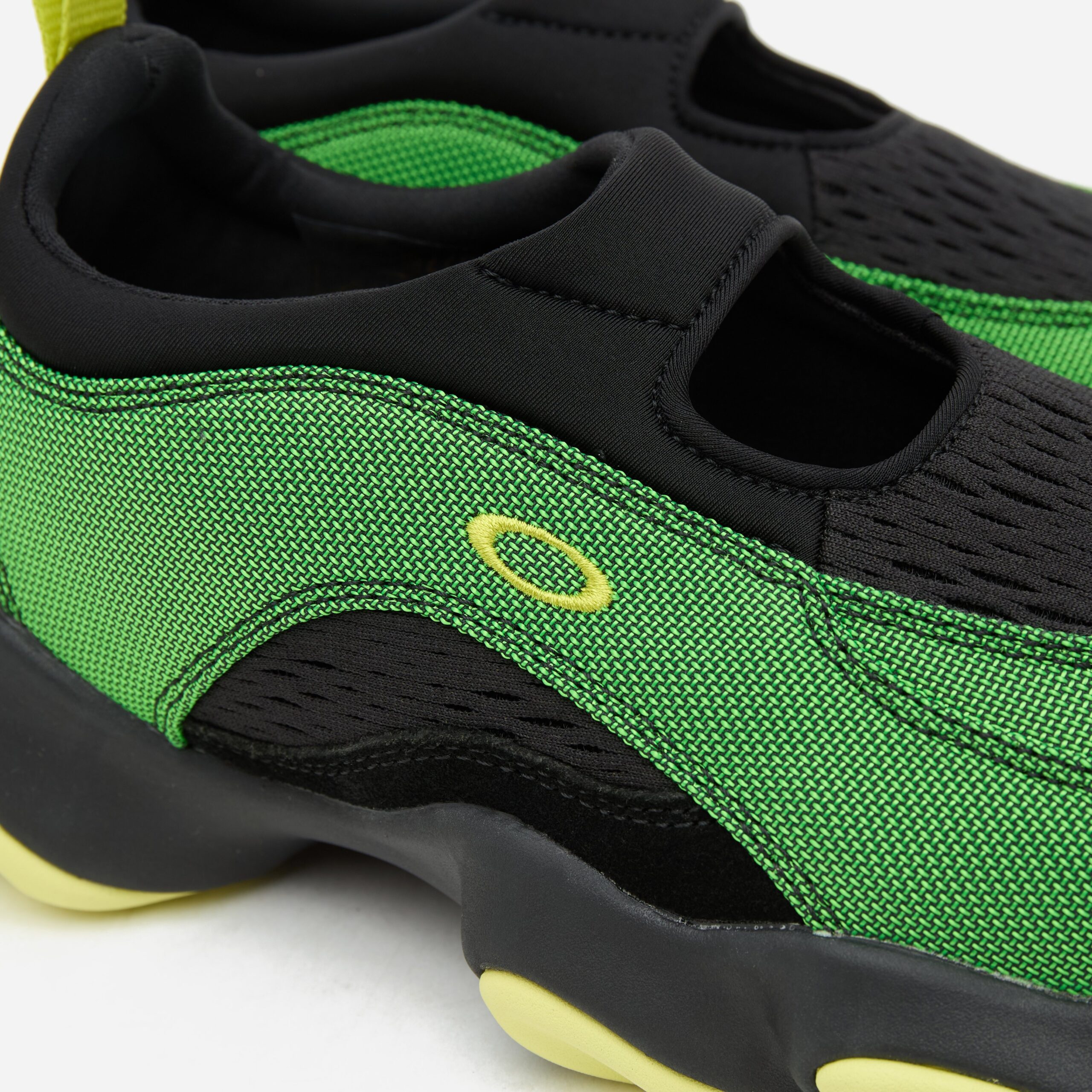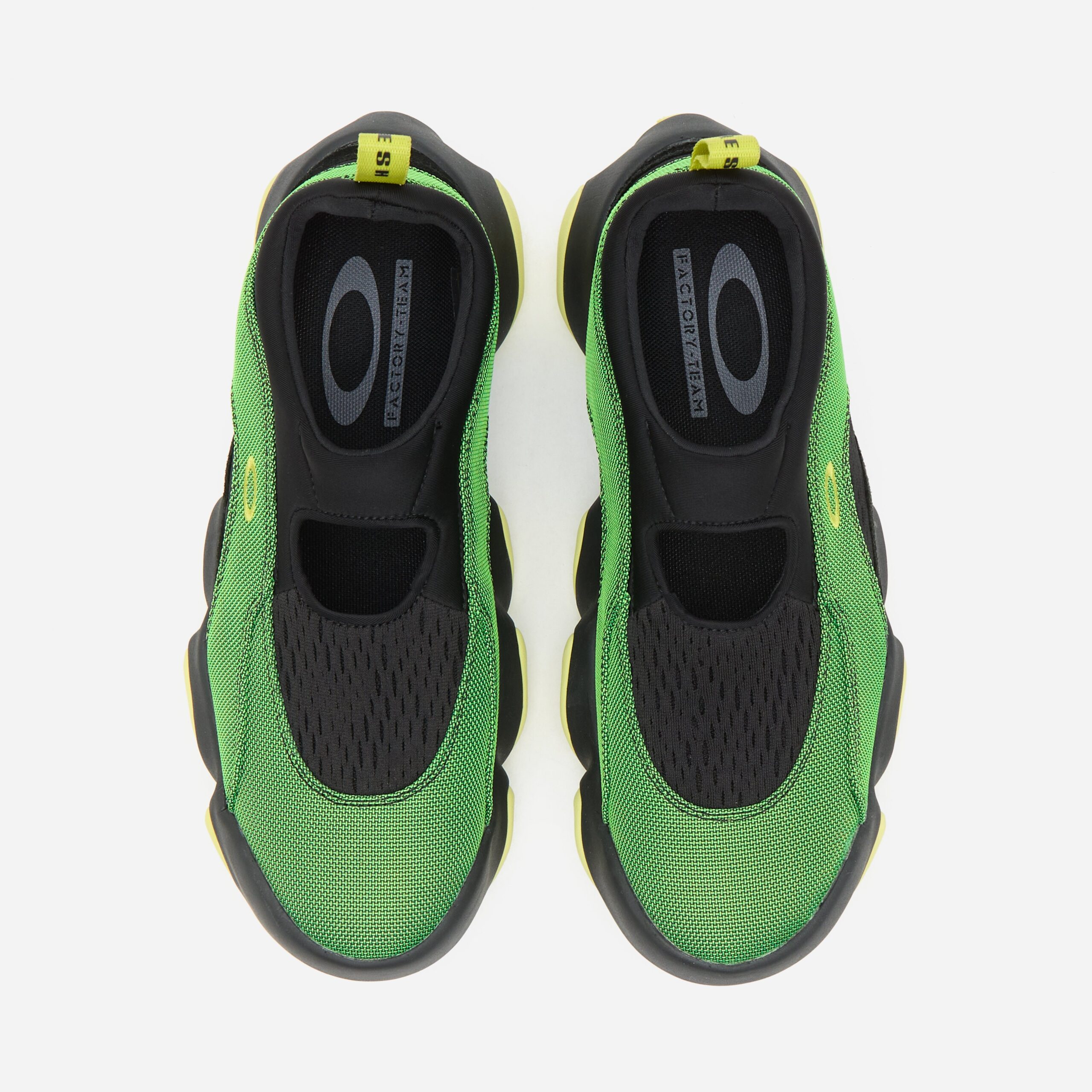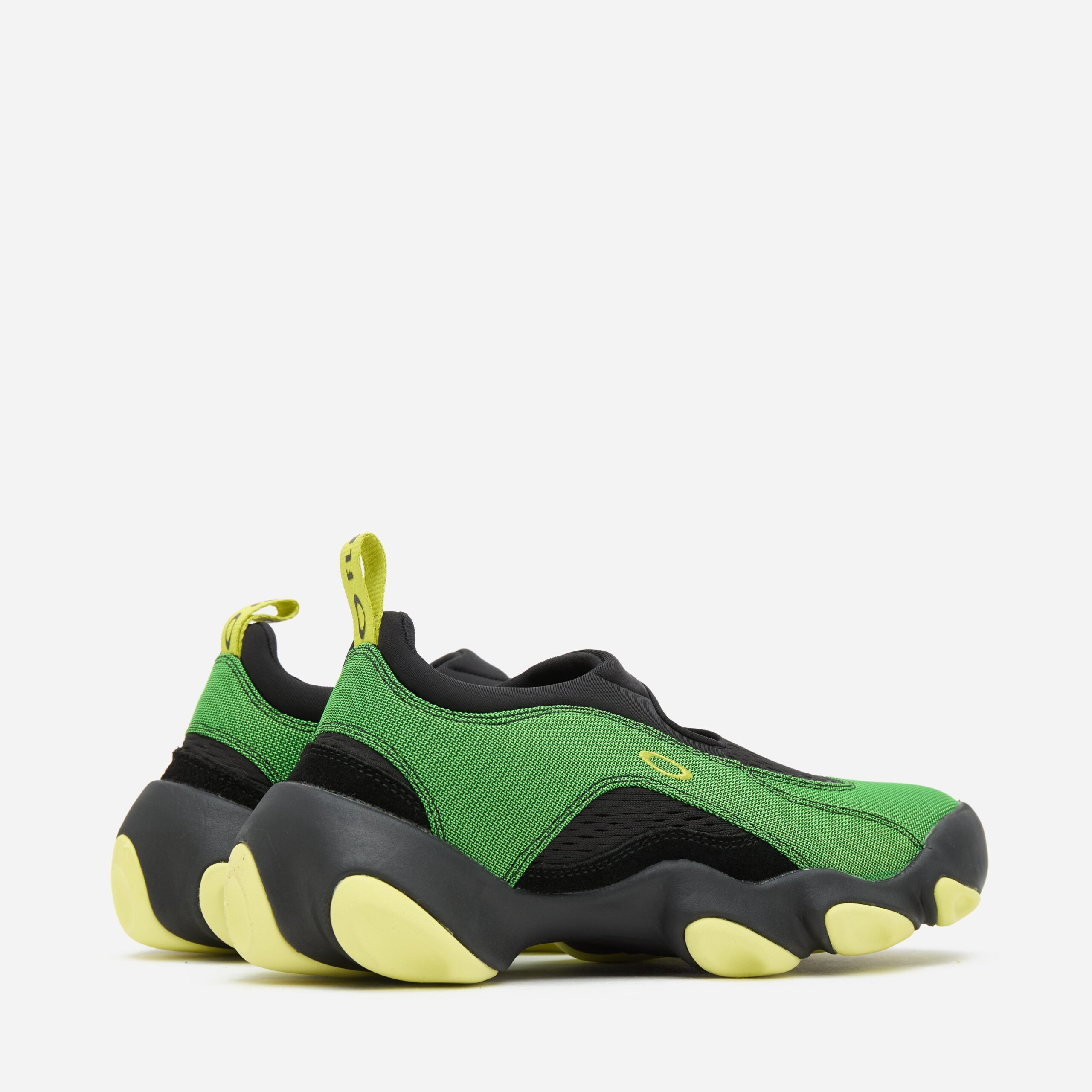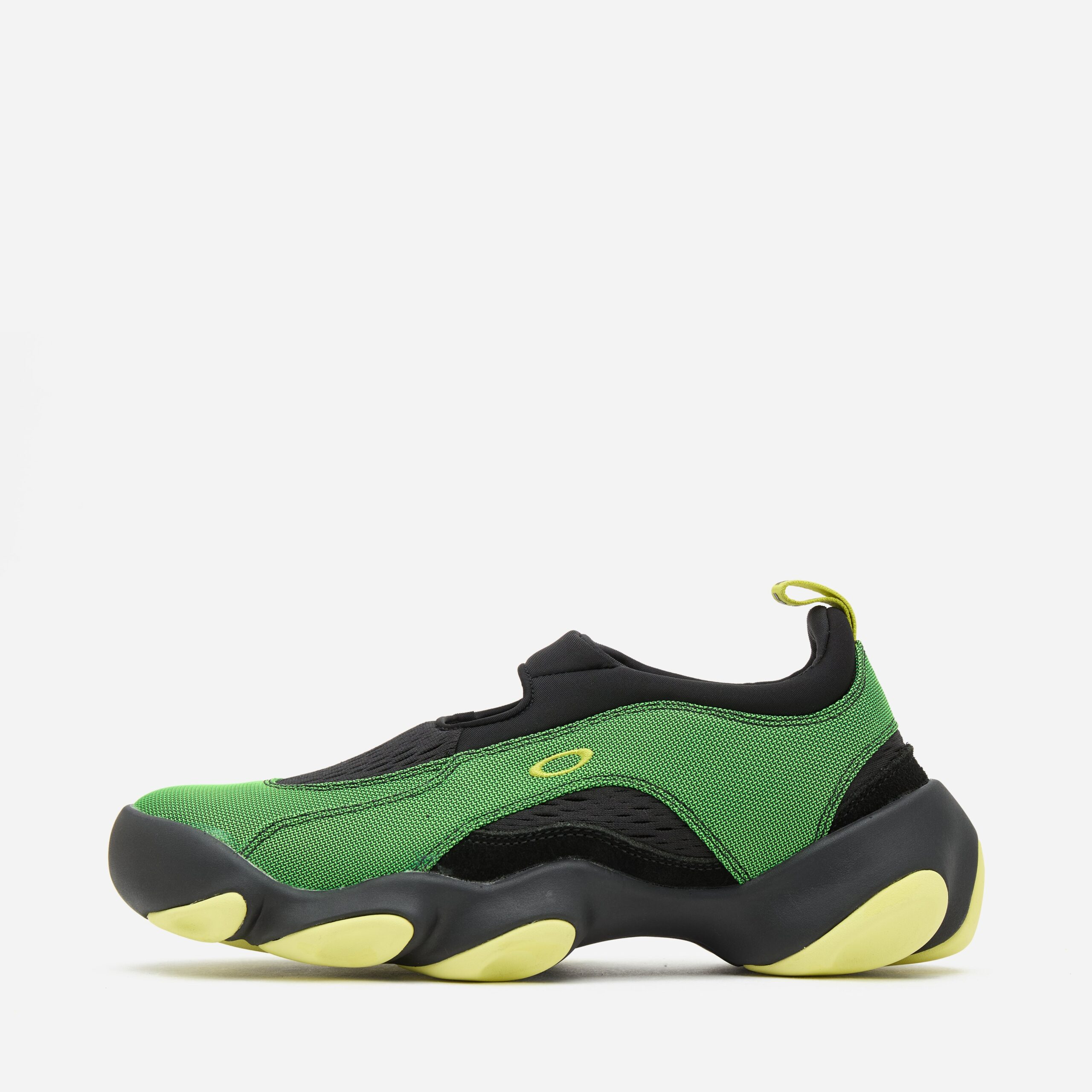 Redesigned by the newly conceived Oakley Factory Team, the Flesh was a ‘2000s model that looked to the future with its fluid shape. Oakley FT’s version experiments with a breathable suede and neoprene upper sat above a chunky, undulating 3-point fit outsole unit for comfort and shock absorption. Green – Suede/ neoprene upper, EVA/ rubber outsole – Padded neoprene sock – Stitched logo – Regular fit, take your normal size – Style code: BDF23S02003572GR31