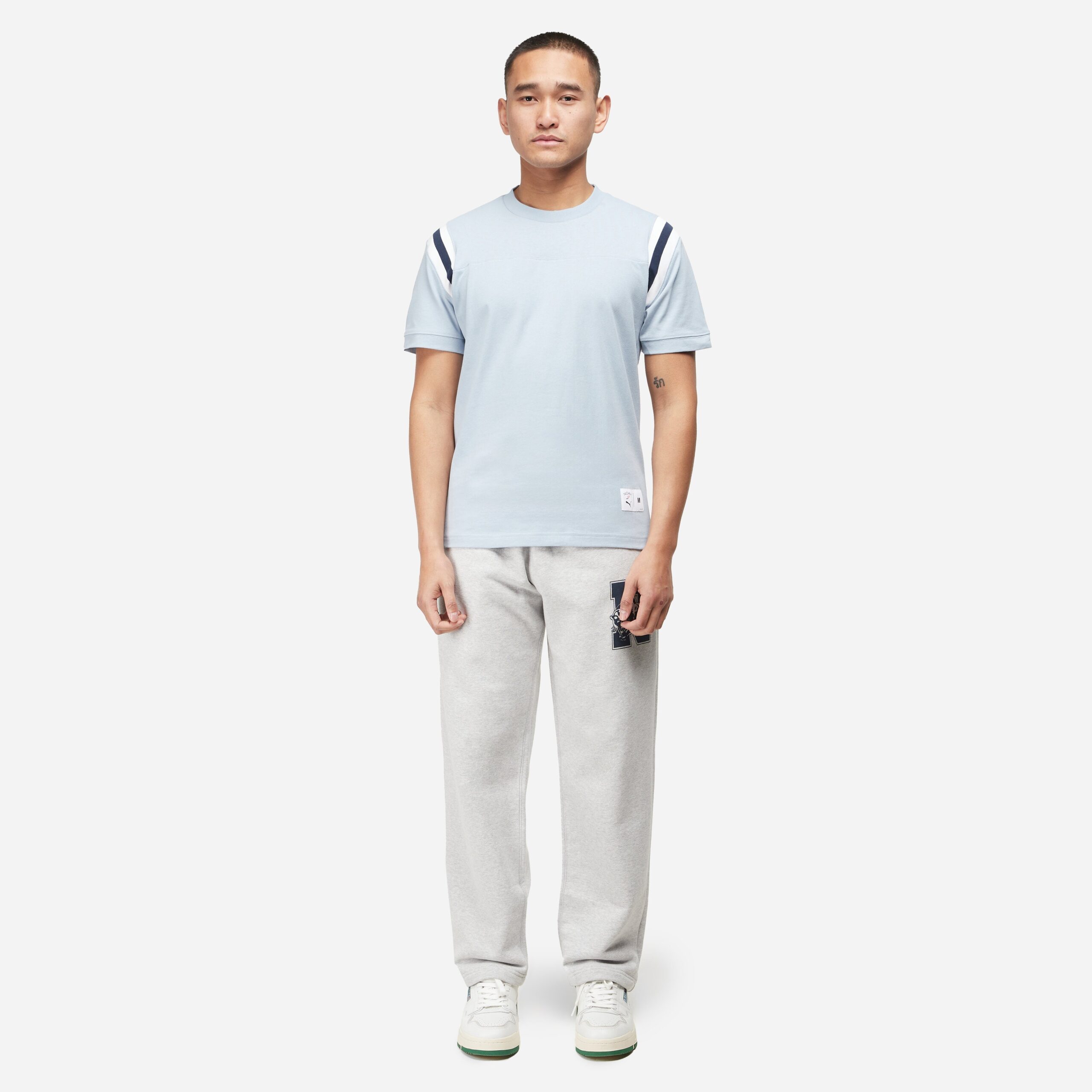 PUMA and Noah’s collaborative project reshapes collective memory of American sportswear. The pair capture the deep-rooted bond between sport and style – the effortless cool of the off-duty athlete. Grey – 70% cotton, 30% recycled cotton – 14oz French terry – Elastic drawstring waist – Rear zip pocket – Printed graphic – Regular fit – Model is 6’0″ and wears a size medium.