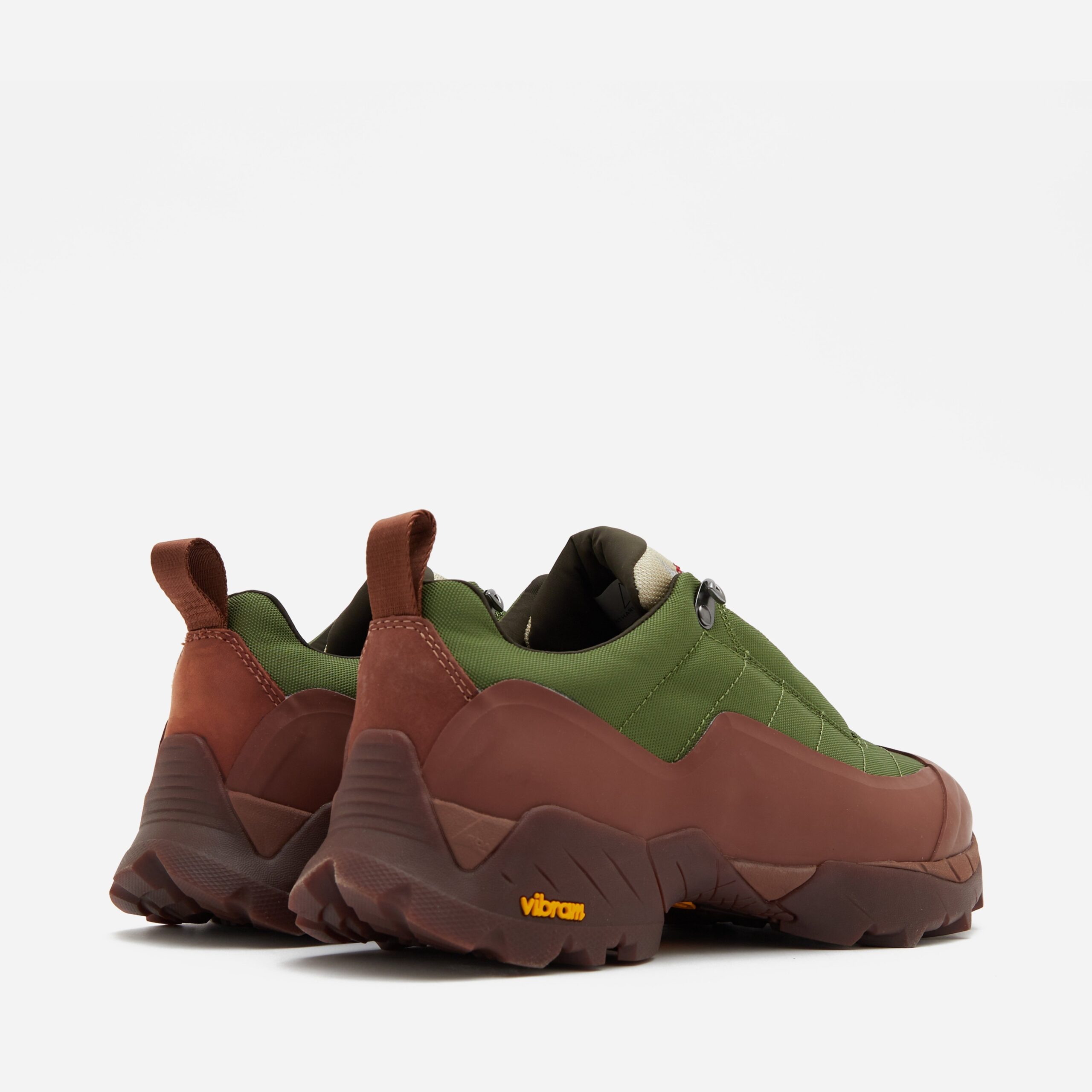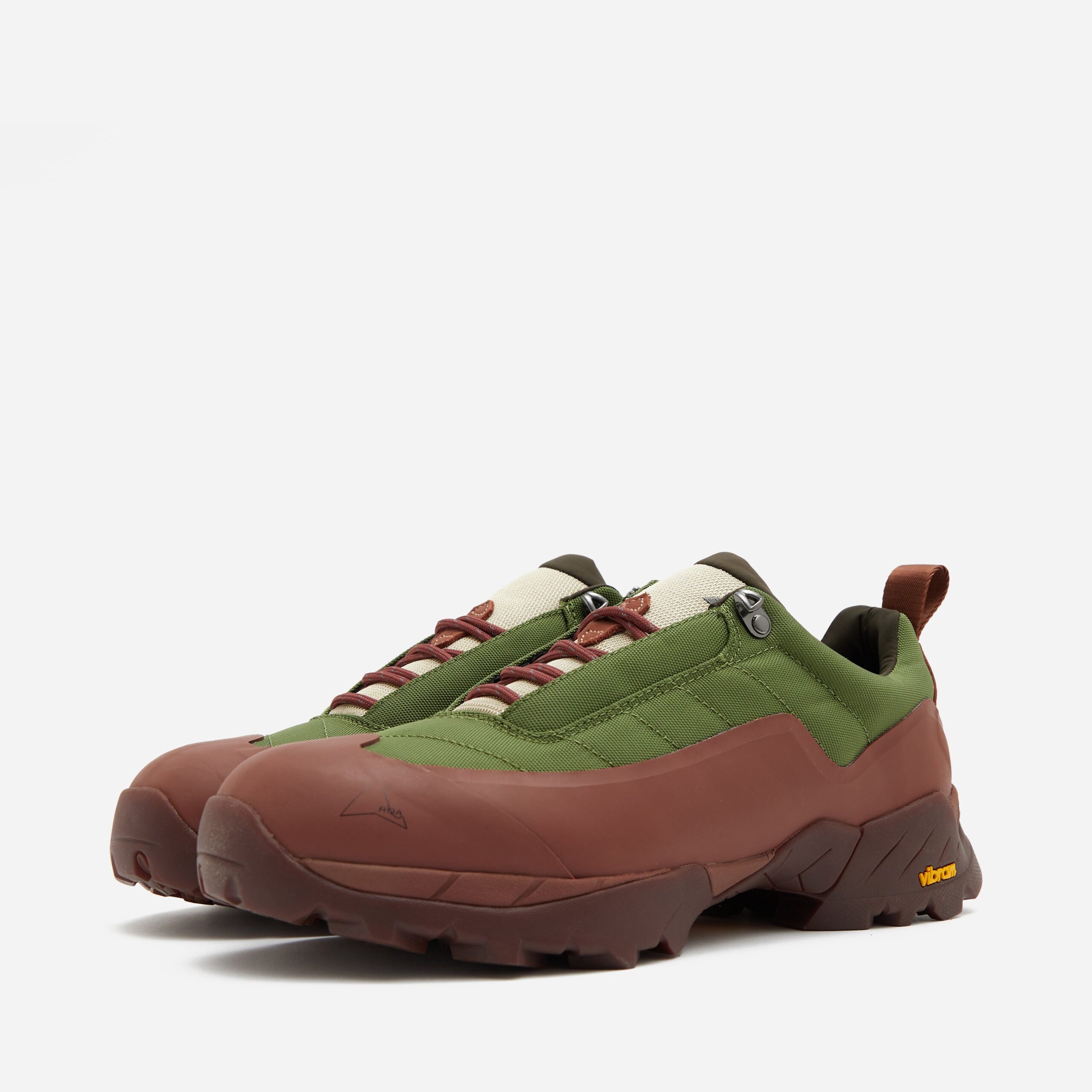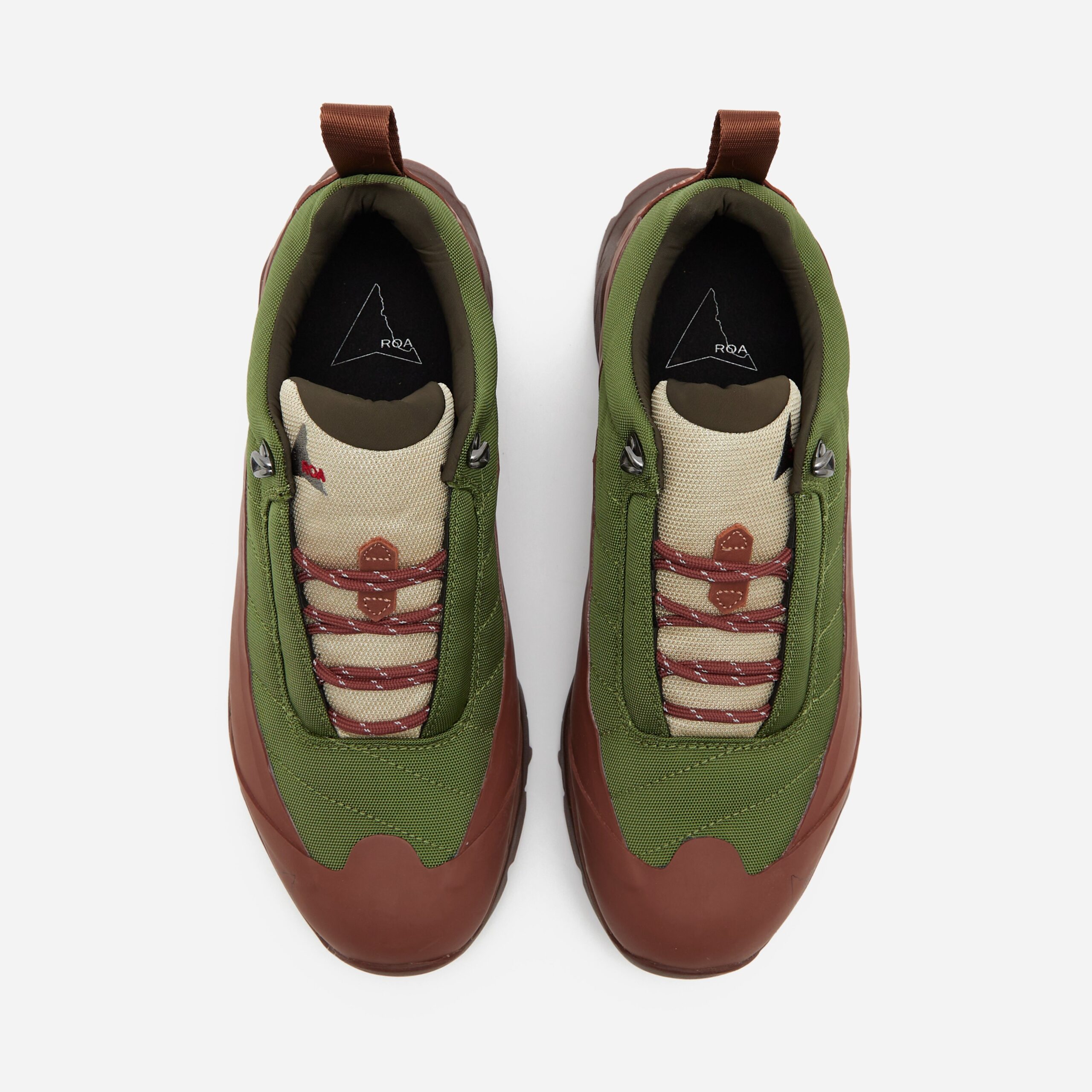 The Katharina is ROA’s take on a traditional approach shoe – a hybrid hiking and climbing shoe. The upper is constructed in an abrasion-resistant technical nylon and a Vibram Ecostep toothed tread pattern sole is used for optimal traction to ensure resistance on the toughest terrains. Brown – Nylon upper, Vibram Ecostep sole – Webbing pull loop – Suede heel counter – Embroidery at the tongue – Logo print – Made in Italy – Regular fit, take your normal size.